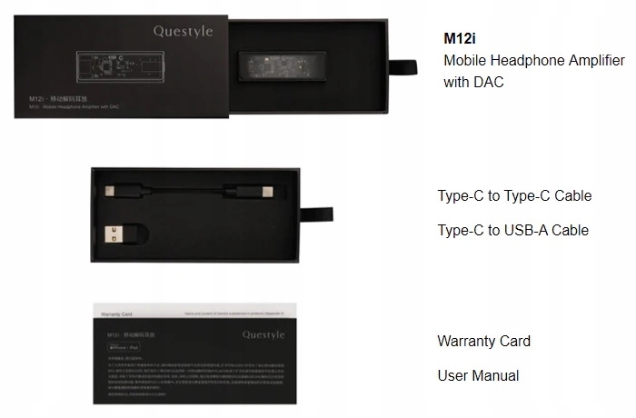 Після успіху першого покоління M12, який розійшовся десятками тисяч, M12i також пропонує високоефективну обробку аудіосигналу. Він усуває обмеження вбудованих аудіочіпів у телефонах щодо технології, вартості та розміру. Завдяки унікальному підсилення поточного режиму Questyle в поєднанні з флагманським чіпом ESS USB DAC, він дозволяє користувачам повною мірою насолоджуватися аудіоконтентом без втрат із потокових платформ через традиційні навушники Hi-Fi, забезпечуючи найкраще звучання.