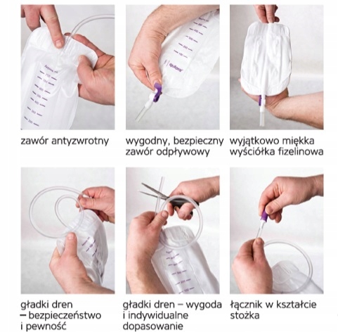 - плавний дренаж мішка полегшує відтік сечі в мішок, не затримуючи краплі сечі. Діаметр і товщина дренажу виключають можливість закупорки дренажу та виключають можливість перегину;