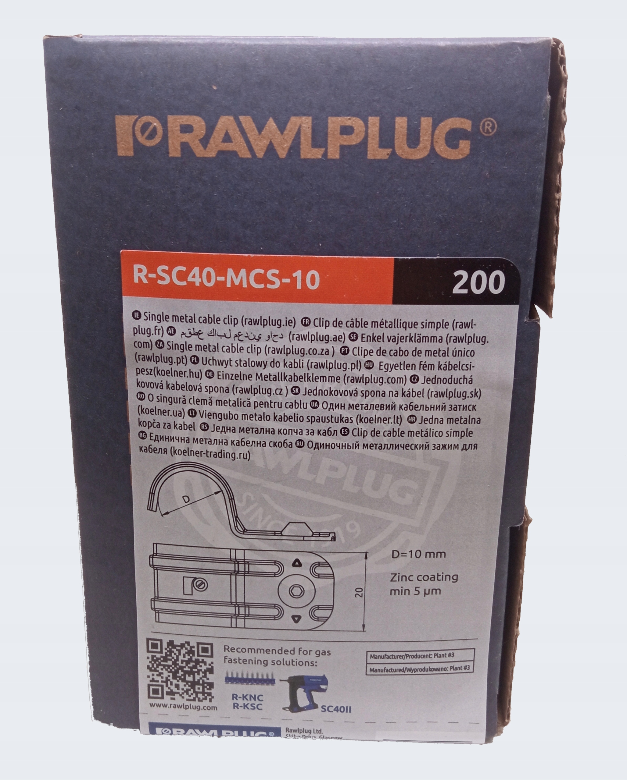 Одиночний сталевий тримач кабелю для протипожежного захисту fi 10 мм OC, упаковка 200 шт. R-SC40-MCS