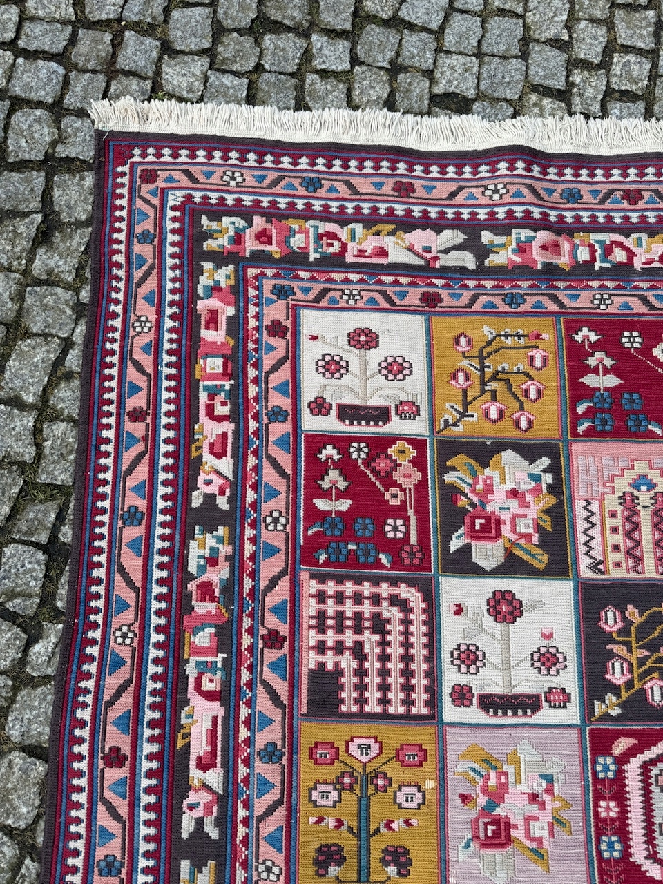 АРТИКУЛ: Килимок, гобелен ручної роботи Made In Iran. Оригінальний східний перський сумах. Є бирка під килим + паперовий сертифікат під замовлення. У галереї до продажу він коштував 2300 євро, або близько 11 000 злотих. Він унікальний завдяки класичному дизайну. Це дуже якісний килим.