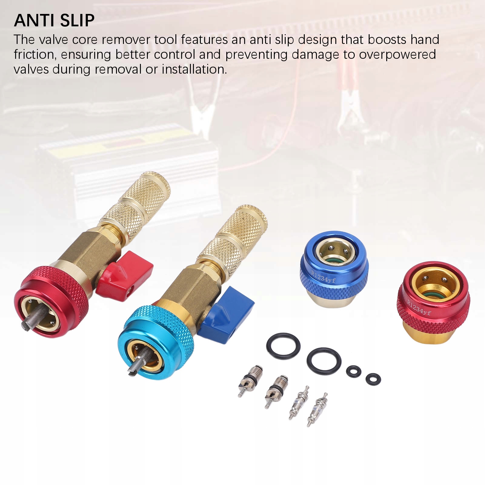 1. ЗАСТОСУВАННЯ: Інструмент для швидкого демонтажу сердечника клапана R134A автомобільного кондиціонера. У разі витоку серцевини клапана ви можете використовувати цей інструмент для заміни серцевини клапана, гарантуючи, що система не витікає з холодоагенту та її не потрібно зливати.