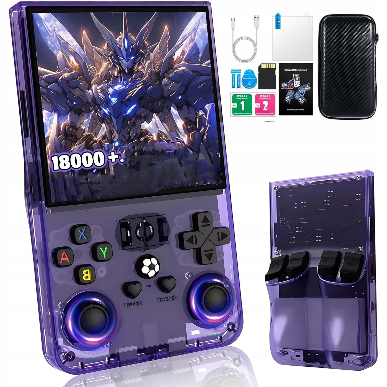 🎮R36MAX Retro Handheld Game Console з 4,0-дюймовим екраном HD IPS, вбудованими 18000+ ретро-ігор, картою пам’яті 64G (фіолетового кольору)