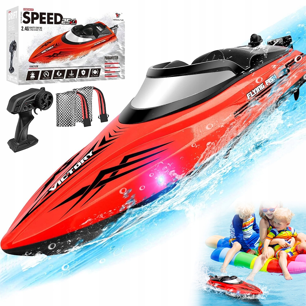 - 1 × Remote controlled racing boat with LED lighting