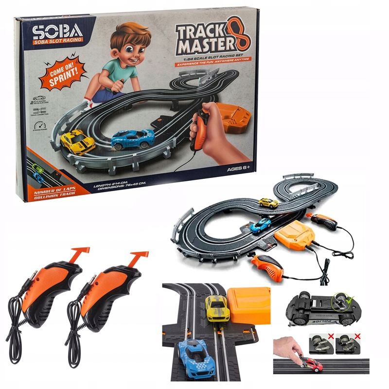 У набір входять траси довжиною 214 см і 2 гоночні транспортні засоби, що означає подвійну дозу веселощів і змагань. За допомогою двох контролерів маленькі водії можуть керувати своїми автомобілями, змагатися один з одним і вдосконалювати свої навички.