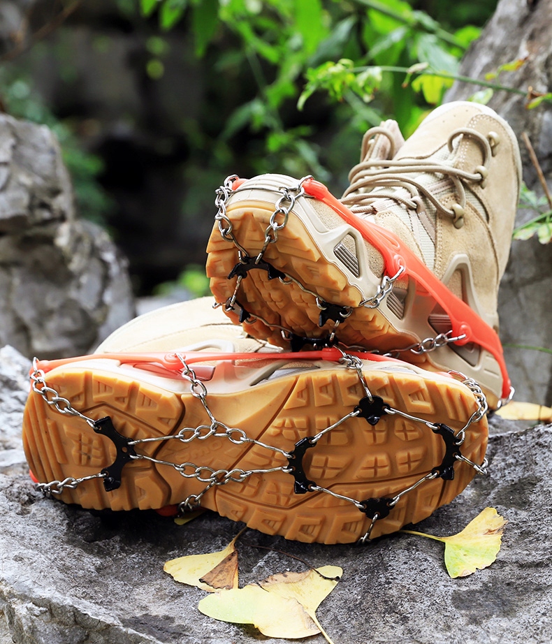 ✅ Повне зчеплення на 360°: Система ланцюгів і шипів покриває всю підошву, забезпечуючи стабільність і запобігаючи ковзанню в будь-якому напрямку.