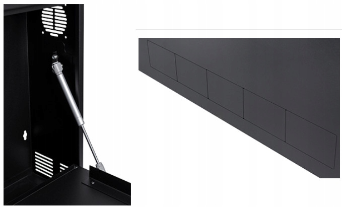 Корпус оснащений спеціальними приводами, які уповільнюють відкриття дверей корпусу. Використовуючи це рішення, ризик пошкодження встановленого обладнання мінімізується, а комфорт використання значно підвищується.