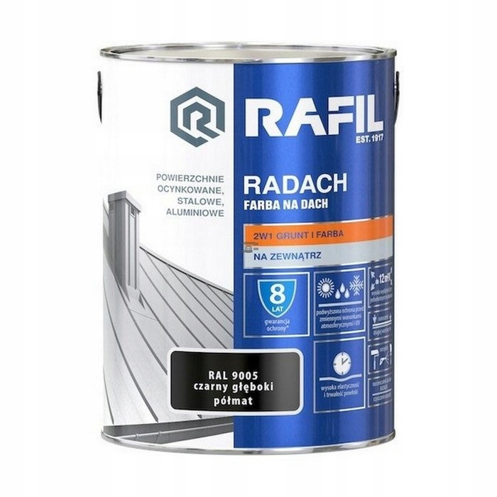 Radach 5L Black RAL9005 НАПІВМАТОВА фарба для даху Rafil оцинкована сталь алюміній