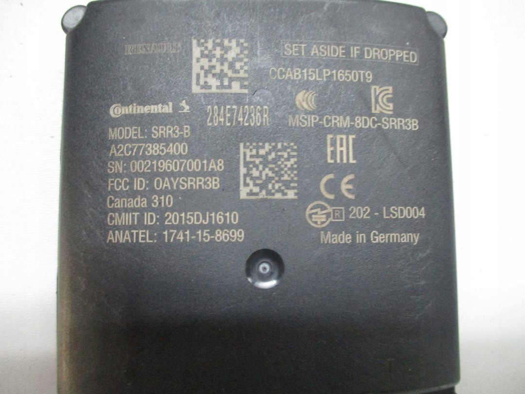 Просматривая «Радар -модуль Renault 284E74236R», вы можете быть уверены, что данный товар из каталога «[rubrica_name]» будет доставлен из Польши и проверен на целостность. В цене товара, указанной на сайте, учтена доставка из Польши. Внимание!!! Товары для Евросоюза, согласно законодательству стран Евросоюза, могут отличаться упаковкой или наполнением.