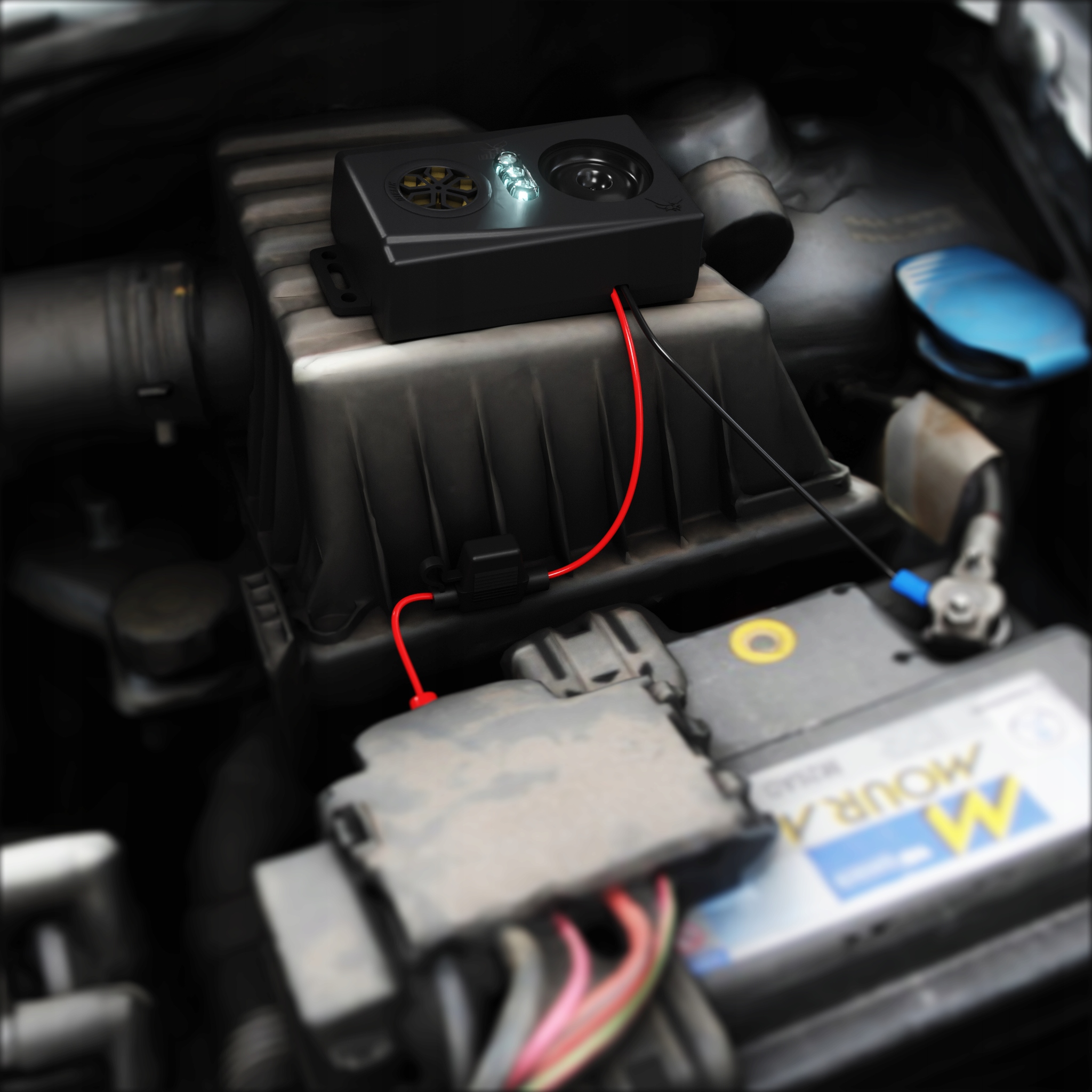 - Автоматичне вимикання пристрою після запуску двигуна та включення після його обороту. Один із кабелів короткий облік установки і його легко замінити, а також широко доступний. Після короткого замикання ми просто замінюємо запобіжник, і ми можемо продовжувати використовувати пристрій. Викидає звукові хвилі та інтенсивність, що перетворюється на ефективність роботи.