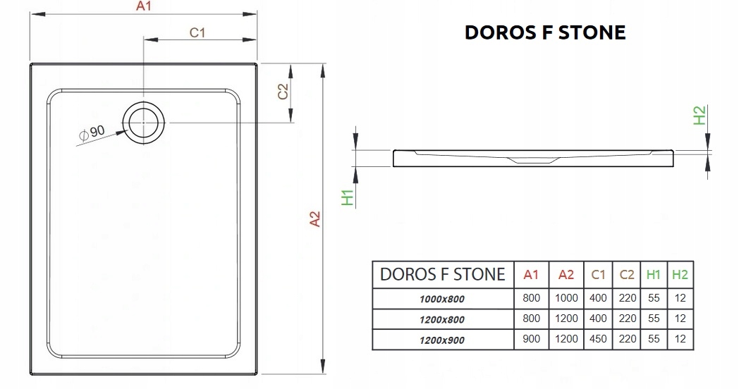 Предмет продажу душовий піддон прямокутний Doros F Stone 100х80х5,5х1,2см(глибина). Акриловий душовий піддон антрацитового кольору, дуже неглибокий, призначений для установки прямо на підлогу, з отвором для сифона діаметром 90 мм. Душові піддони цієї серії сумісні з сифонами TB90, TB21, TBXS, R500, R580, R510, R400SLIM, 4R00W SLIM (доступні на інших наших аукціонах).