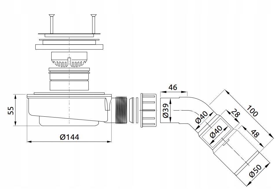 Сифон призначений для душових піддонів Kyntos і Teos, очищається зверху з підвищеною швидкістю потоку води.
