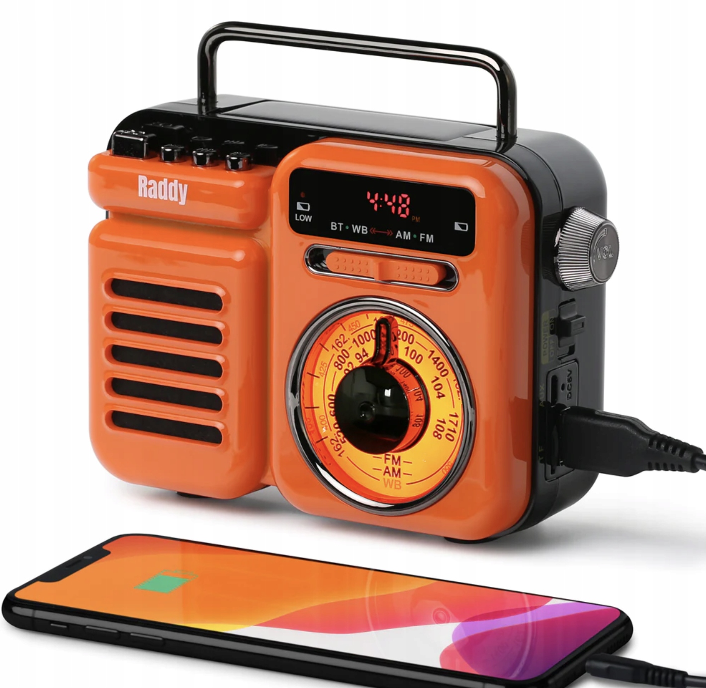 𝗺𝗮𝗹𝗹 𝗕𝘂𝘁 𝗠𝗶𝗴𝗵𝘁𝘆: на відміну від інших FM/AM/NOAA радіостанцій, RW3 – це динамік Bluetooth із помаранчевим ретро-виглядом. Інші функції включають будильник, рукоятку для екстреного живлення та ліхтарик.