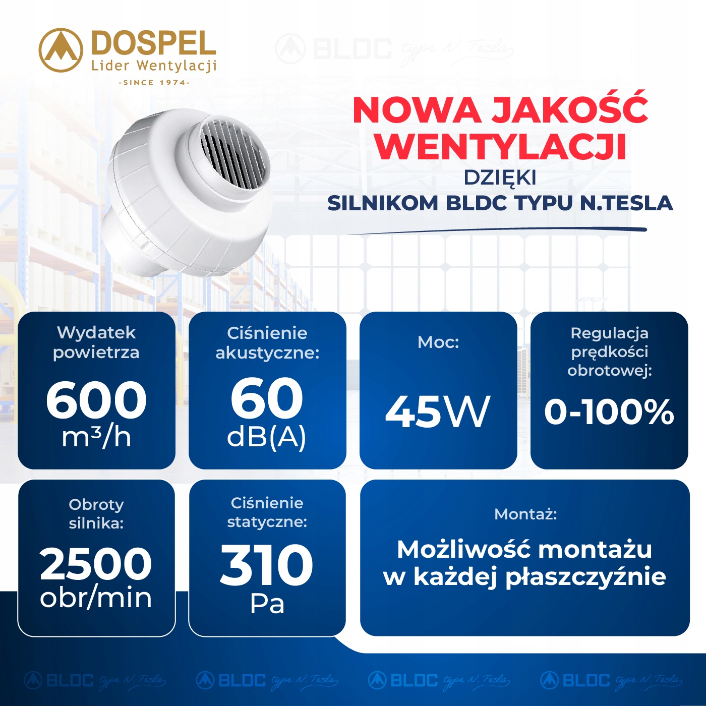 ✅Лідер у сфері вентиляції DOSPEL, як ПЕРШИЙ У СВІТІ, створив лінійку промислових вентиляторів, оснащених надійними та енергозберігаючими двигунами BLDC типу N. TESLA