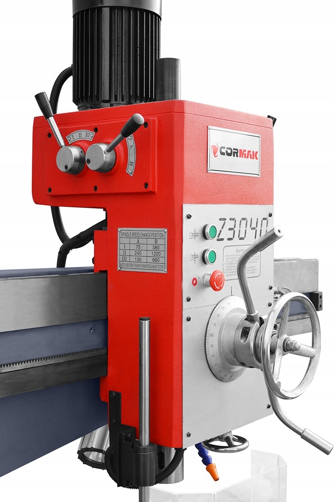 Свердло характеризується міцною, міцною конструкцією, що забезпечує стабільність і мінімальну вібрацію під час роботи. Важка основа машини сприяє плавній і тихій роботі. Кубічний стіл дозволяє точно затискати заготовки, що полегшує точне свердління. Завдяки автоматизованій системі регулювання висоти руки, яка управляється з інтуїтивно зрозумілої панелі, розташованої на передній частині пристрою, робота стає зручною та ергономічною. Крім того, точно оброблена колона забезпечує плавний рух рукоятки, а ручні фіксатори головки та плеча колони підвищують рівень безпеки. Широкий діапазон швидкостей обертання дозволяє різноманітно обробляти різні матеріали, забезпечуючи точність і ефективність роботи.