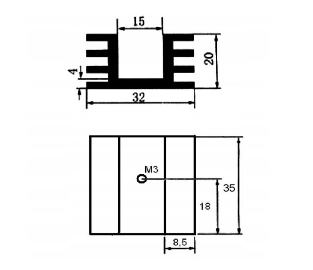 Радіатор ALU чорний DY-AM 35MM FI 3mm TO220 FV
