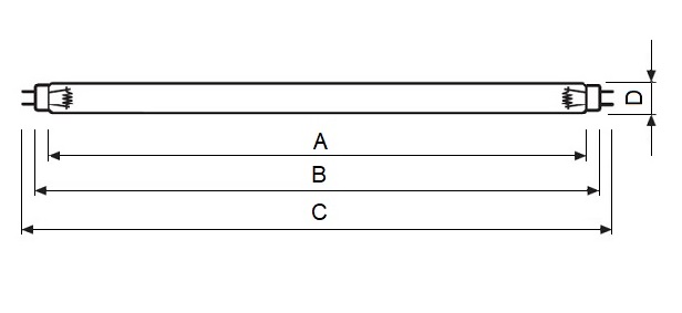 Ультрафіолетовий радіатор Osram Puritec HNS T5 G4 потужністю 4 Вт у вигляді лінійної люмінесцентної лампи T5 діаметром 16 мм зі стандартним двостороннім цоколем G5 (у разі Люмінесцентні лампи UV-C, виробники позначають цю особливу потужність люмінесцентної лампи як G4).
