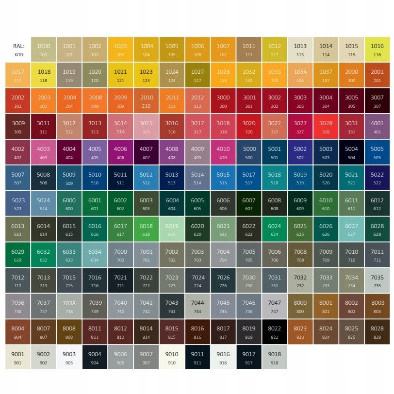 - колір - вибирається з RAL або спеціальної палітри кольорів