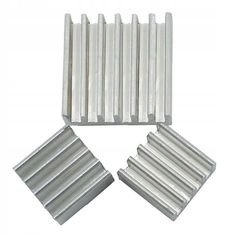 Набір із трьох алюмінієвих радіаторів для відведення тепла. Для використання в ПК Raspberry Pi і Orange Pi. Вони також можуть бути успішно використані в інших проектах. Кріплення за допомогою самоклеючої стрічки (термопровідної 3М).