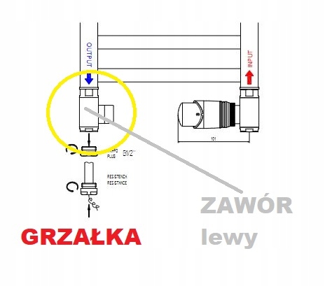 Корпус клапана інтегрований з трійником, що дозволяє підключати електронагрівач безпосередньо через вентиль до радіатора - рекомендується встановлювати нагрівач на запірний кран.