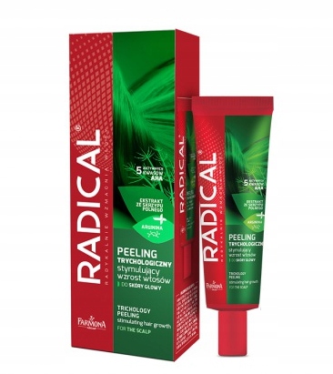 Трихологічний пілінг Radical покращує стан шкіри голови. Глибоке очищенняі видалення омертвілої шкіри призводить до зміцнення волосся, обмеження випадання та прискорення природного росту. Насичена поживними речовинами формула комплексно доглядає за шкірою голови та забезпечує оптимальне зволоження шкіри голови. Завдяки регулярному застосуванню пілінгу ви досягнетевражаючих ефектів і раз і назавжди позбудетеся проблеми випадіння волосся.