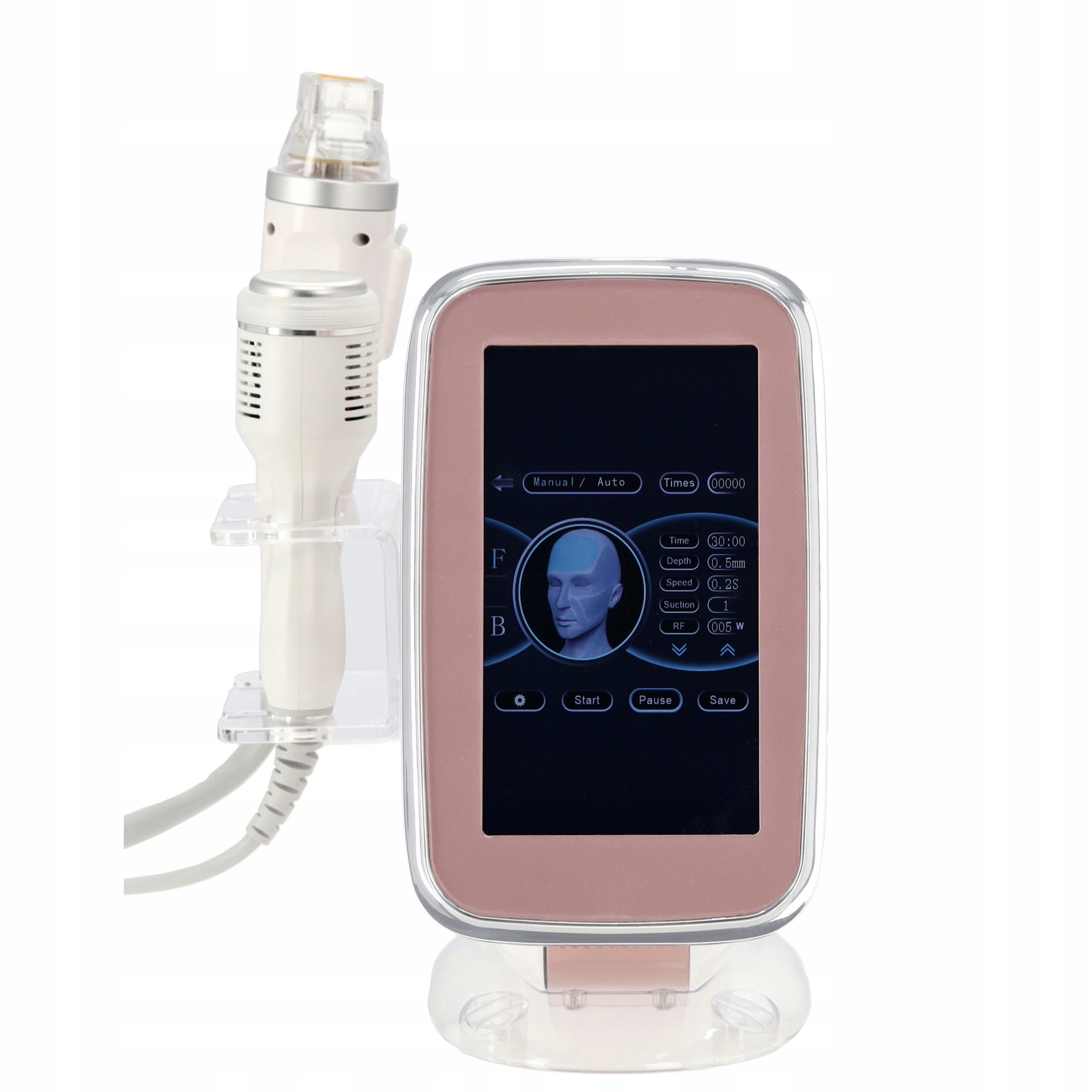 Апарат поєднує радіохвильову технологію з мікроголковою мезотерапією. Під час процедури шкіра одночасно проколюється і прогрівається радіочастотним струмом, який впливає як на епідерміс, так і на більш глибокі шари шкіри. Процедуру можна проводити наобличчі та тілі, а повний ефект помітний приблизно через 3 місяці.