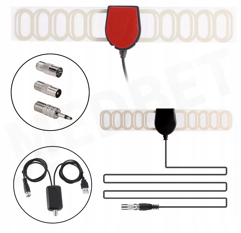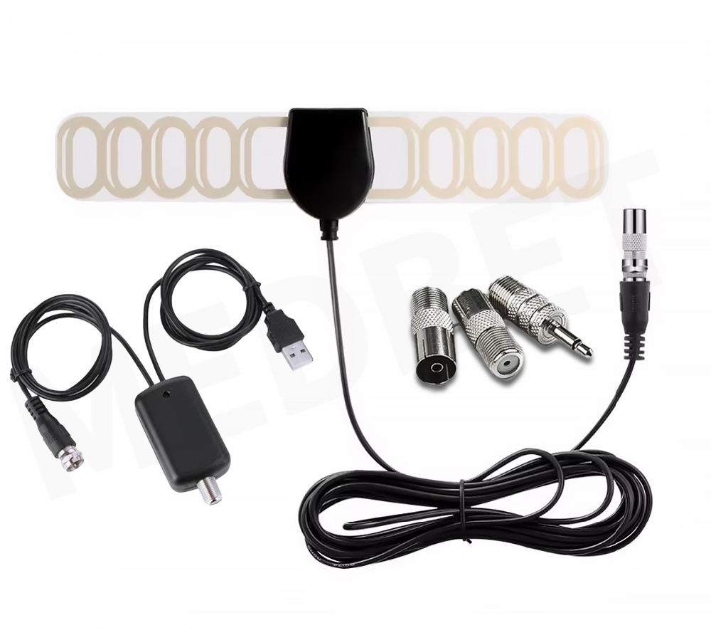 - Included antenna amplifier powered via a USB port (any USB charger required)