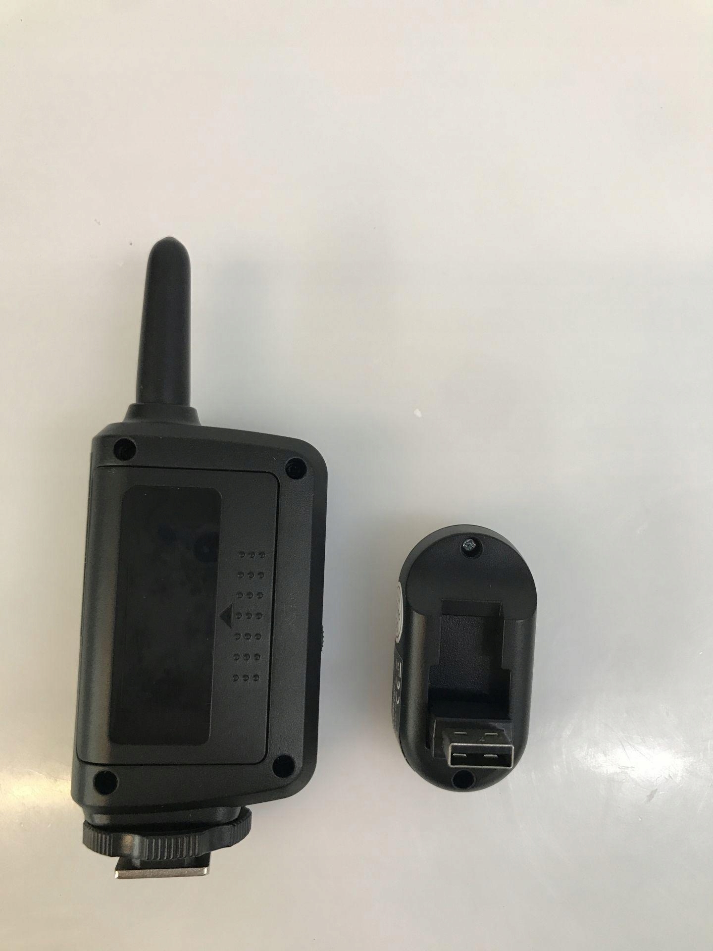 бездротовий випуск затвора з USB -роз'ємом для компактних та студійних ламп, наприклад > Передача частоти 433 Гц, діапазон до 50 метрів, швидкість синхронізації: 1/250 S