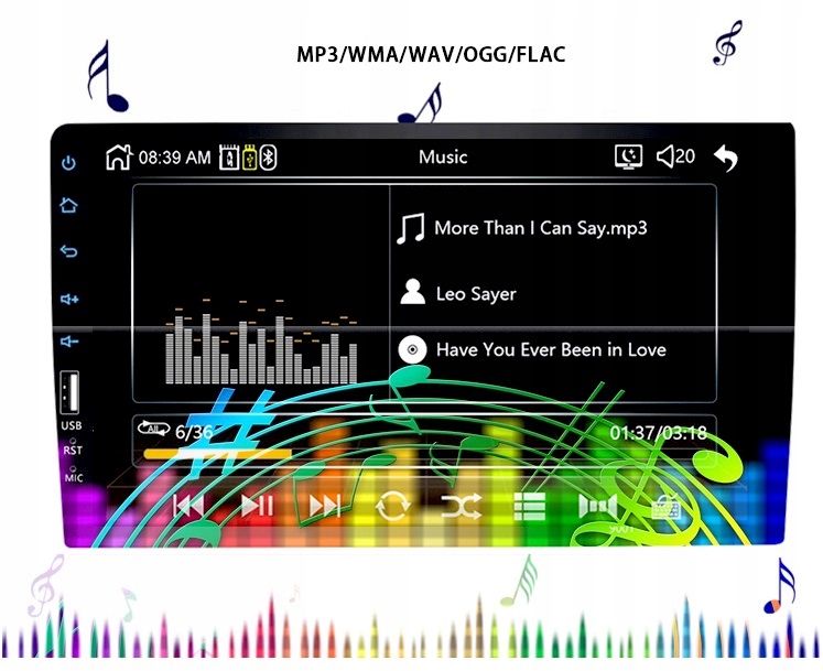 - Підтримувані формати аудіофайлів mp3/wma/wmv/ogg/ape/acc/flac