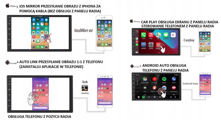 ➡ Apple Car Play iOS: Apple Carplay - це форми кращої інтеграції вашого смартфона з вашим автомобілем. З цією системою все SEM, щоб бути простішим та інтуїтивнішим. Це стандарт Apple, який дозволяє радіо -автомобілем або радіоплеєром бути дисплеєм та контролером для пристрою iOS. Параметр JE доступний для всіх моделей iPhone (від iOS 5 7.1)