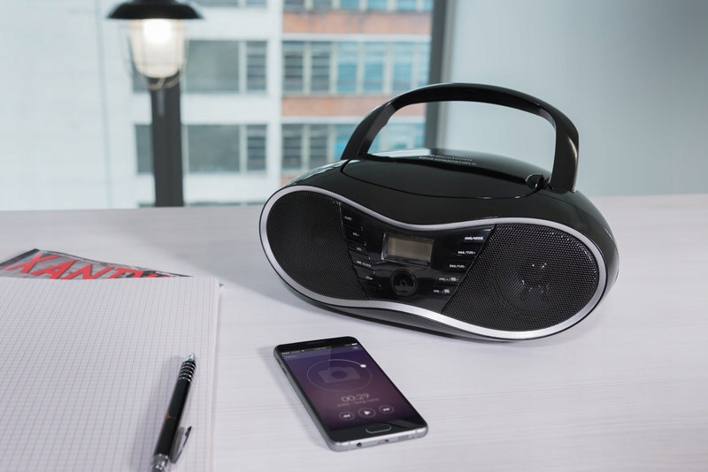 Радіо з компакт-дисками оснащено програвачем компакт-дисків, USB-портом і пристроєм для читання карт пам’яті SD.