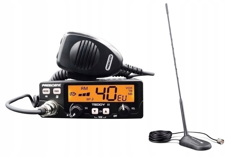 РАДІО CB PRESIDENT TEDDY II ASC VOX + МАЛА АНТЕНА MIDLAND MC45 - КОМПЛЕКТ