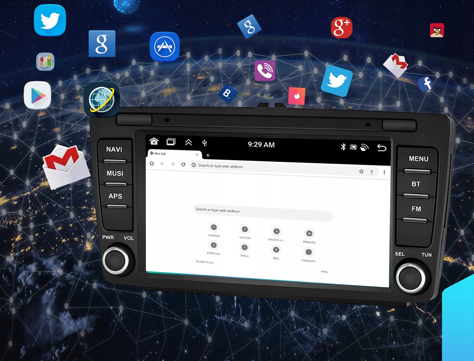 Завдяки вбудованому модулю GPS та антені, що входить до комплекту, ми можемо використовувати будь-яку навігаційну програму в автомобілі, напр. AutoMapa, Igo, TomTom, MioMap та інші. завантажено з Google play - play market як на телефоні