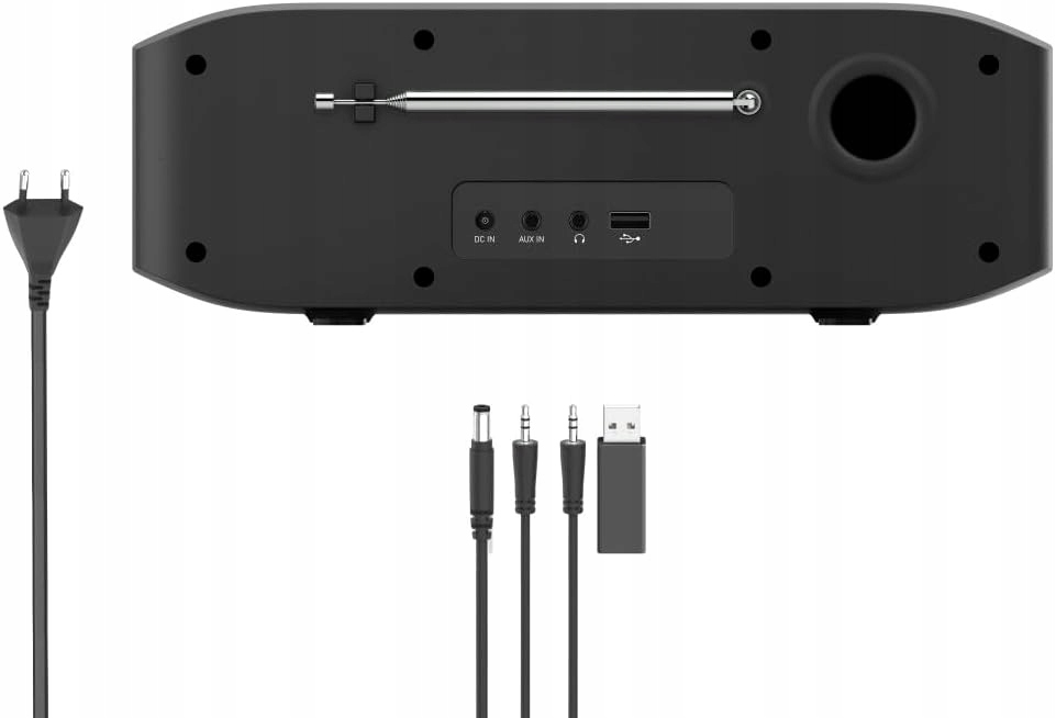 - Роз'єми: AUX In (3,5 мм), вихід на навушники (3,5) мм), порт USB (для оновлення програмного забезпечення)