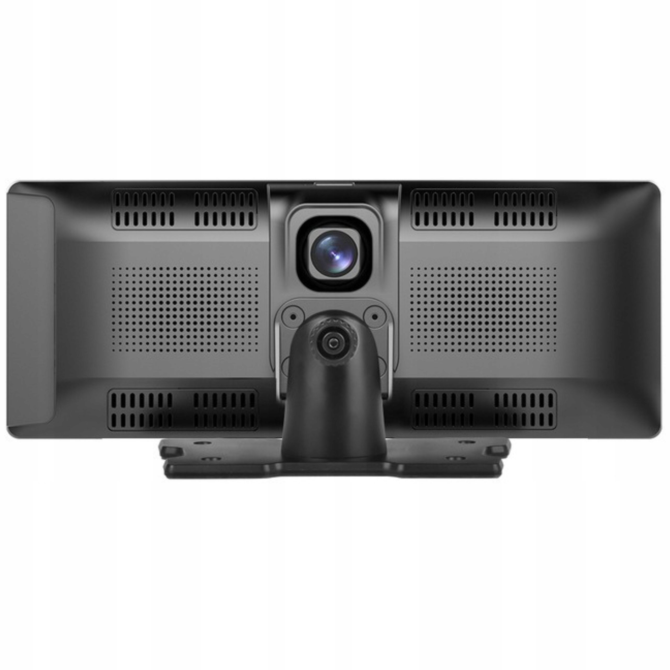 Ще одна функція монітора - запис маршруту з двох камер підвищеної якості, тобто AHD (Full HD). Одна камера вбудована в монітор і дивиться вперед (є можливість трохи відрегулювати об'єктив). Друга камера також AHD якості, підключається кабелем до монітора і кріпиться ззаду. Крім того, задня камера може працювати як камера заднього виду. Якщо правильно під’єднати та ввімкнути задню передачу, ви можете автоматично мати зображення з камери на екрані монітора.