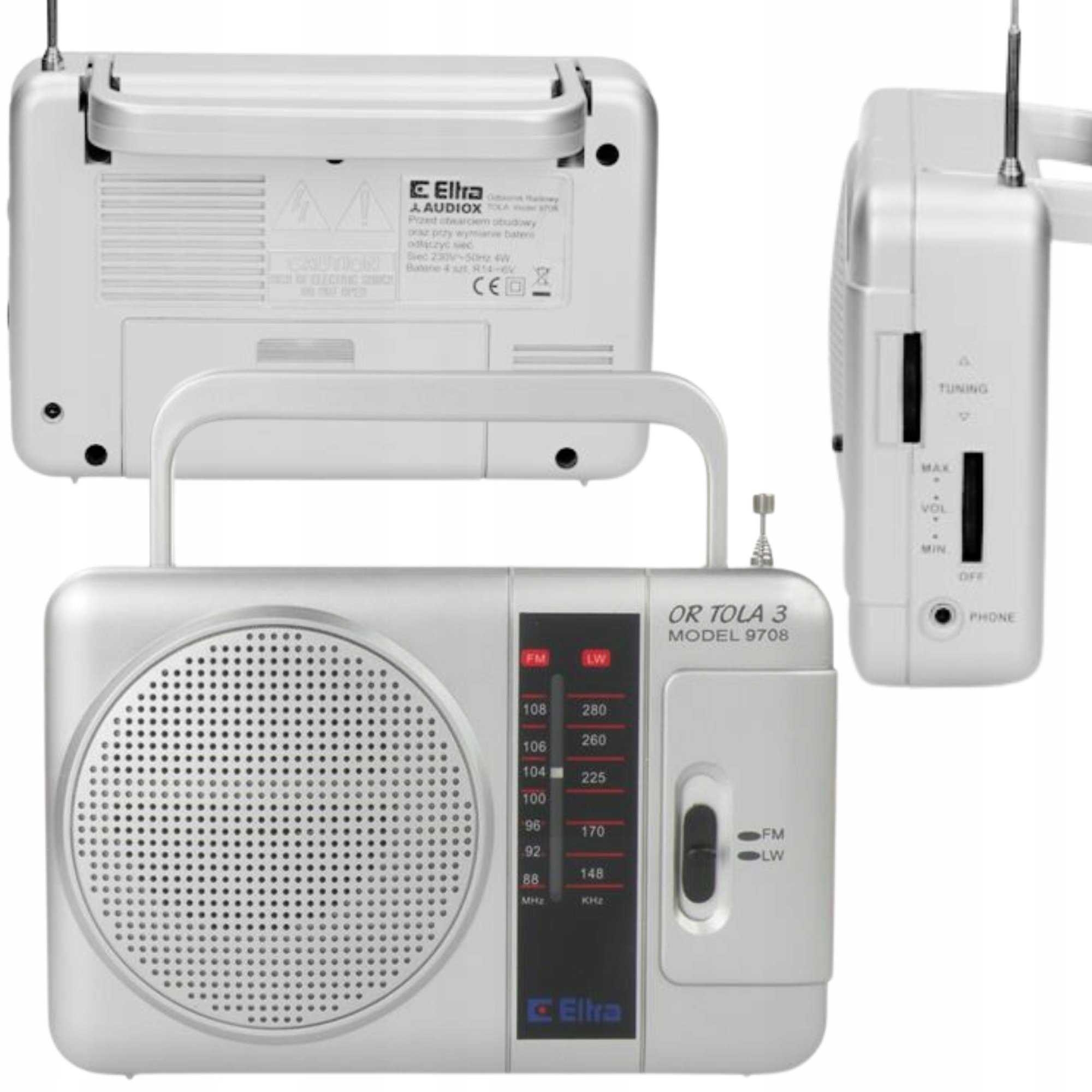 Радіо Ельтра Тола оснащена обертальною телескопічною антеною для прийому на діапазоні FM (VHF) , що сприяє колекції поганих радіостанцій. Розтягнення та обертання антени допомагає отримати кращий прийом
