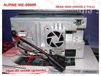 роз'єм для підключення до радіо Alpine Ine-S900R та інших як еквівалент роз'єму під заводським обладнанням пристрою. Дозволяє підключити додаткові підсилювачі, задній дисплей або камеру, що повертає.