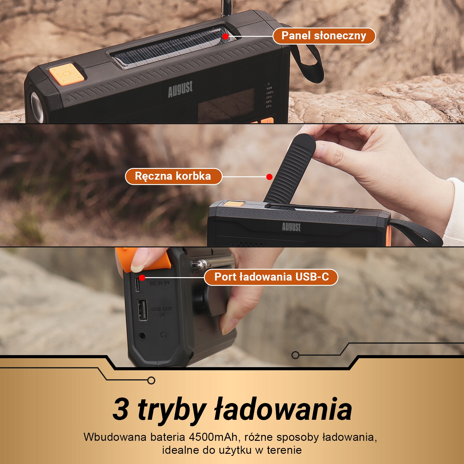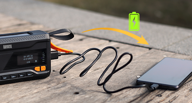 MB290 пропонує 3 різні методи заряджання, щоб гарантувати, що незалежно від того, куди ви плануєте піти (або де ви фактично опинилися), ви можете заряджати інші пристрої та залишайтеся на зв’язку. Радіо з рукояткою чудово працює поза розеткою, навіть вночі, а вбудована сонячна панель дозволяє здійснювати пасивну бездротову зарядку вдень.