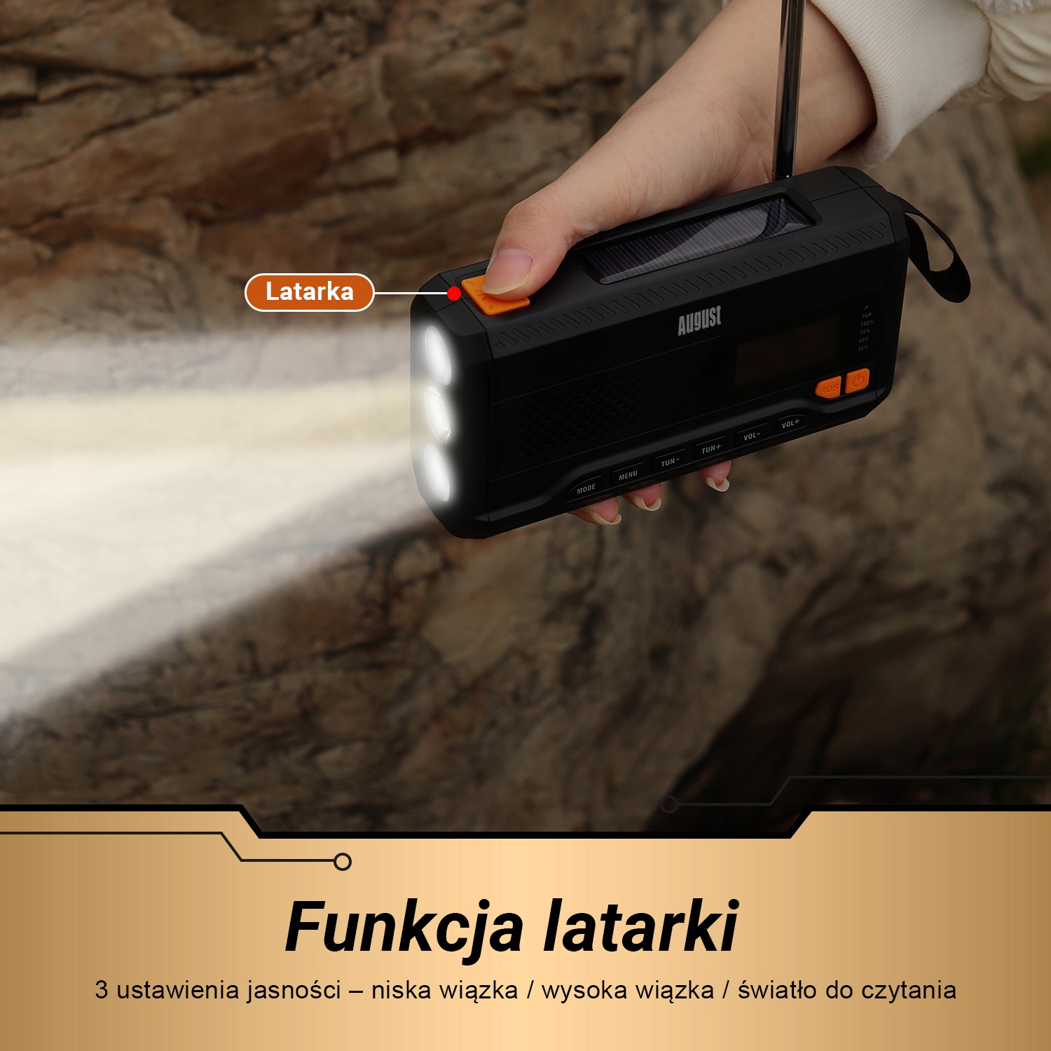 Радіо сонячний ліхтарик SOS PB August MB290
