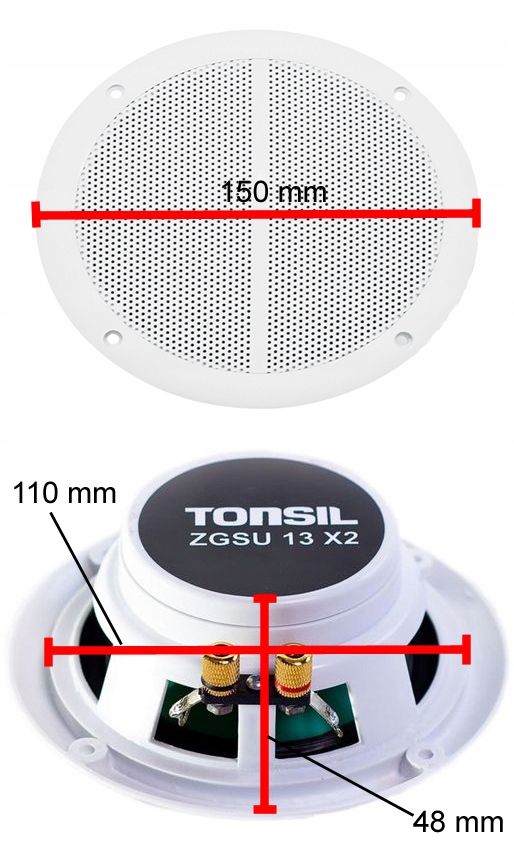 Ідеальну якість виготовлення та чистоту звуку можна отримати завдяки дивовижному низькочастотному динаміку з котушкою, намотаною мідним дротом на алюмінієвий каркас. Надзвичайно міцна мембрана зміцнена формованим під тиском поліпропіленом. М'який бас забезпечує широкий підвіс. Повністю увігнута діафрагма забезпечує чисте поширення звуку. Колонки можна встановлювати в стіни та підвісні стелі з гіпсокартону та у ванних кімнатах, оскільки вони водонепроникні.