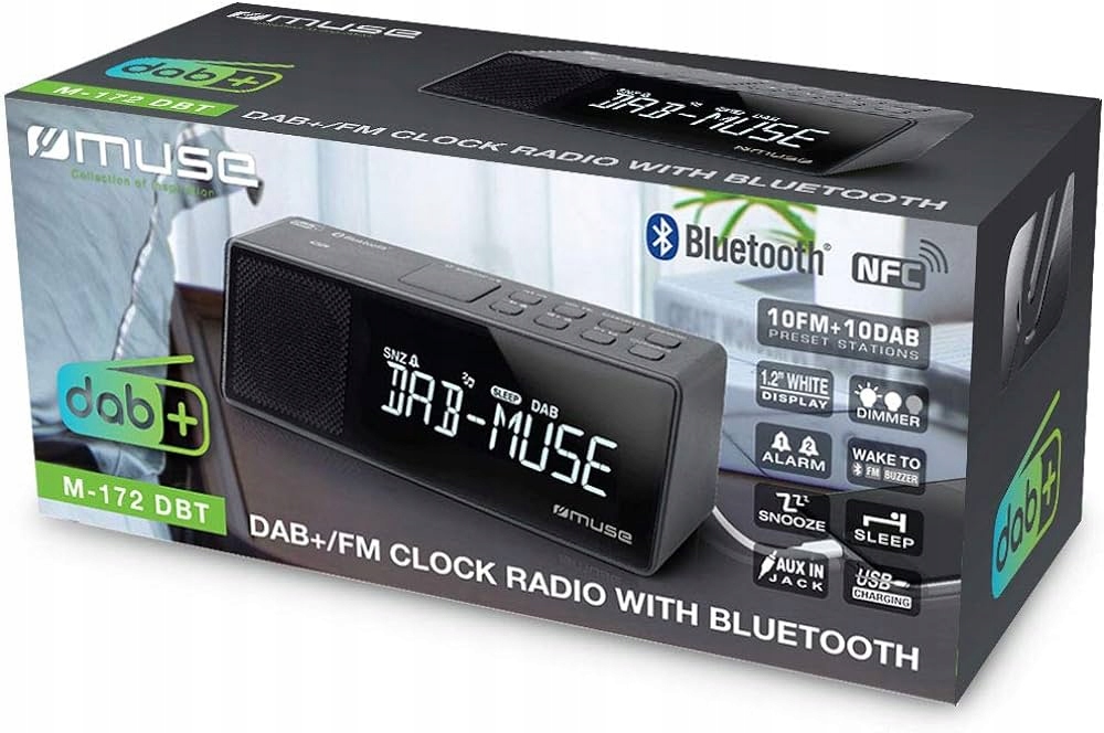 Радіо-будильник M-172 DBT DAB+/FM PLL з технологією Bluetooth - це відмінний пристрій, який забезпечить вам не тільки доступ до улюблених радіостанцій, але й можливість насолоджуватися музикою зі смартфона або планшета. Перегляньте основні функції цього продукту нижче: