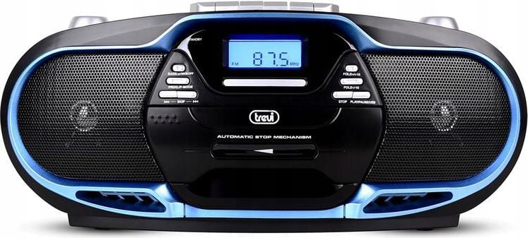 Вбудований FM/MF-тюнер, додатковий акумулятор і зручна ручка у верхній частині пристрою роблять компактне радіо постійним супутником у подорожах. Простий дизайн пристрою та стильні сині акценти на передній панелі роблять головний пристрій Trevi чудовим виглядом будь-де.