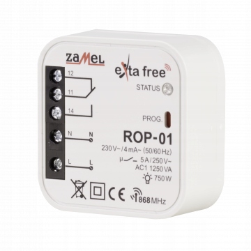 Радіоприймачі прихованого монтажу використовуються як елементи для монтажу в інсталяцію ящики під- і накладного монтажу, а також виконавчі механізми, вбудовані безпосередньо в корпуси освітлювальних приладів та інших приймачів. ROP-01 дозволяє працювати в 5 різних режимах (увімкнено, вимкнено, моностабільний, бістабільний, режим часу)