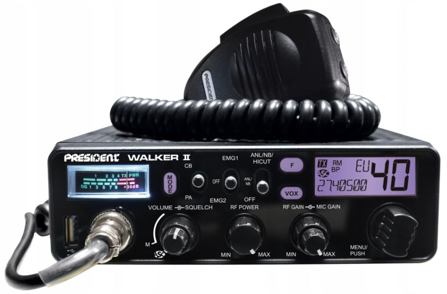 CB-радіо President Walker II ASC є одним із найкращих портативних CB-радіо, що працюють з випромінюваннями AM/FM, доступних на ринку. Виробник відомої компанії President. Відносно простий у використанні і в той же час високотехнологічний. Він розроблений для дуже вимогливих користувачів, які понад усе цінують якість і довговічність. Радіо має великий чіткий LCD дисплей і мікрофон з можливістю перемикання каналів (кнопки UP і DN). President Walker — це пропозиція для професійних водіїв, які мають місце для встановлення CB-радіо в класичному корпусі та хочуть, щоб радіо було встановлено на видному місці в межах досяжності.