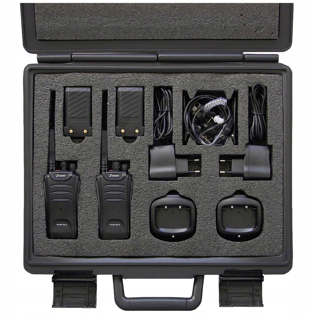 - 2 ручні радіоприймачі, 2 літій-іонні батареї, 2 блоки живлення, 2 настільні зарядні пристрої, 2 затискачі для пояса, валіза Примітка! Опис цього продукту було автоматично перекладено.