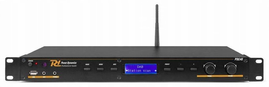 усе в одному для громадського харчування, компаній, барів, ресторанів, дому, дискотек, шоу тощо. Це універсальний пристрій для багатьох застосувань. PDC40 невеликий за розміром, але все ще має тюнер DAB+, FM, Bluetooth і вбудований MP3-плеєр USB. PDC40 можна використовувати скрізь, де потрібна музика без шумів. Пристрій можна легко підключити до існуючої аудіосистеми через вихід RCA на задній панелі.