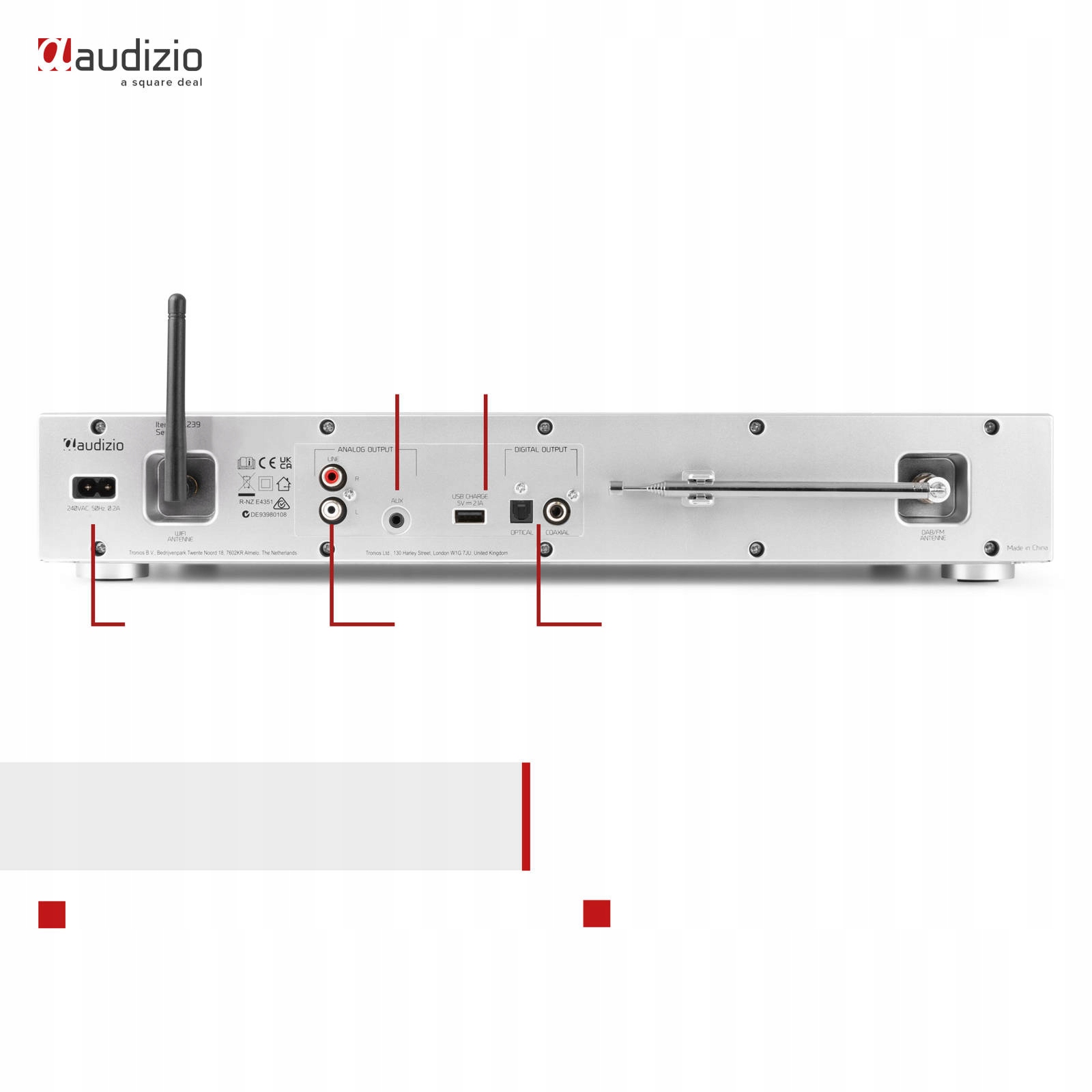 Audizio Adria — це DAB-радіо, точніше DAB-тюнер, з інтернет-радіо Wi-Fi, Bluetooth, Spotify Connect і MP3-плеєром USB. Підключіть тюнер Adria до існуючої стереосистеми, і ваша Hi-Fi установка буде миттєво вдосконалена всіма сучасними параметрами потокового передавання музики. Тюнер оснащений як цифровими, так і аналоговими виходами, тому ви завжди можете підключити його до підсилювача. Кольоровий дисплей надає всю необхідну інформацію і, звичайно ж, оснащений годинником. Звичайно, пульт дистанційного керування входить у комплект для оптимальної зручності використання.