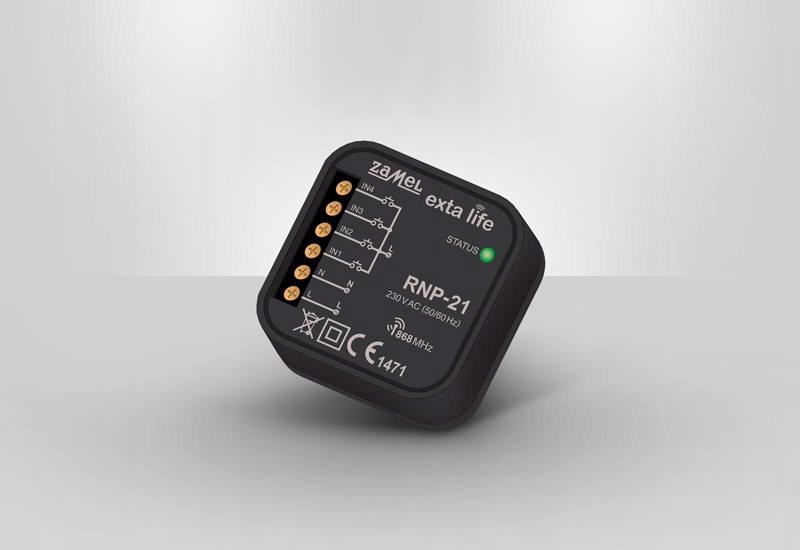RNP-передавач 21 дозволяє бездротове керування приймачами системи EXTA LIFE. Він призначений для виконання таких функцій, як дистанційне вмикання/вимкнення освітлення, регулювання інтенсивності освітлення, закривання/відкривання віконних жалюзі та гаражних воріт. Передавач призначений для встановлення в коробках для прихованого монтажу (мінімум ?60 мм) під наявне обладнання. Це дозволяє використовувати електромонтажне обладнання будь-якого виробника і не накладає жодних обмежень на дизайн і характер інтер'єру. Пристрій живиться від мережі напругою 230 В. Має чотири входи, що дозволяє незалежно контролювати до чотирьох приймачів (каналів) системи. Вбудований світлодіод індикує передачу, яка закодована, що додатково забезпечує безпеку управління.