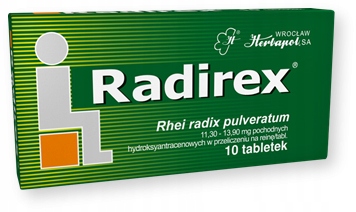 - Як і всі проносні засоби, Radirex не слід застосовувати, якщо у вас є будь-які недіагностовані симптоми гострого або постійного болю в животі.