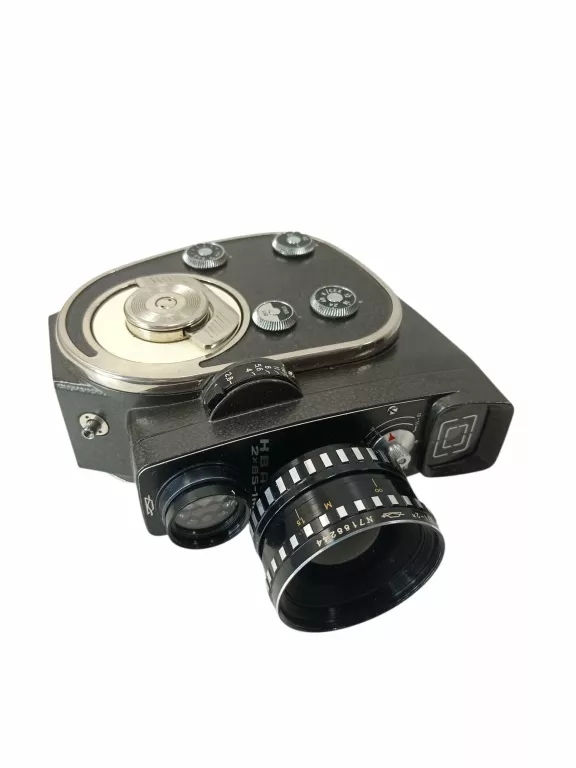 Радянський кіноапарат ЗЕНІТ KWARC 28S-1M - це класичне аналогове обладнання, призначене для зйомки на плівку 8 мм. Цінується колекціонерами та любителями старого кіно за міцну металеву конструкцію та характерний стиль виробництва СРСР.