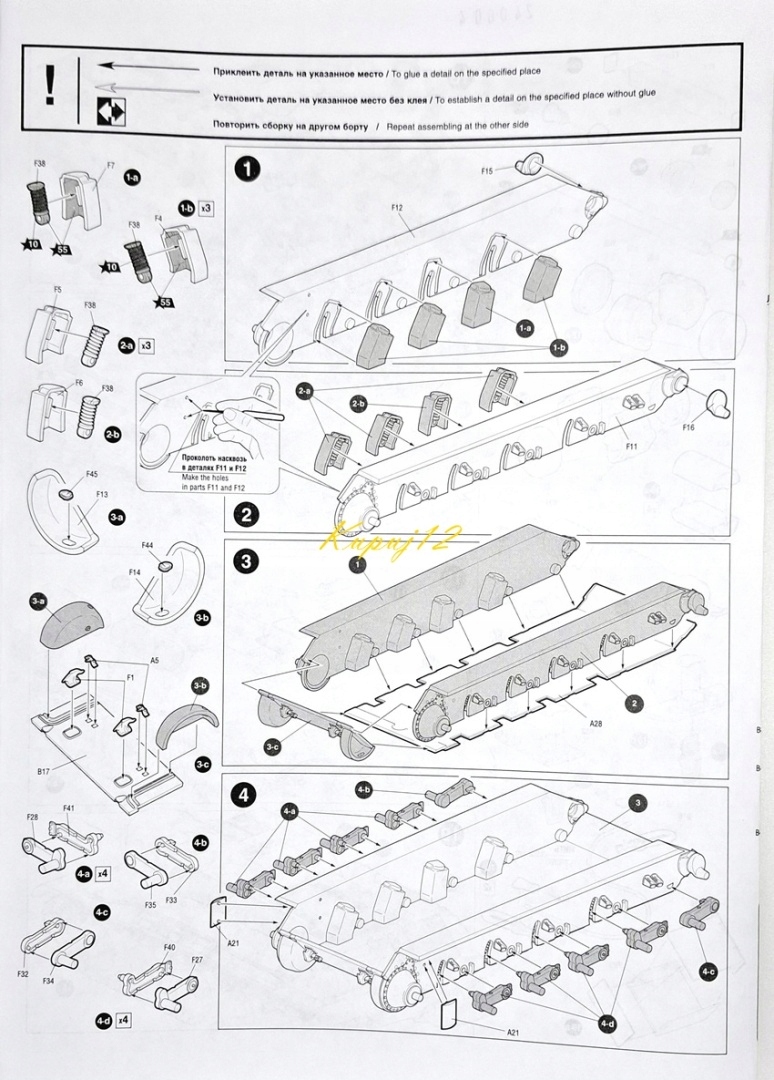 Пластикові елементи слід вирізати з кадрів, встановити та склеювати відповідно до прикріплених інструкцій складання. 4